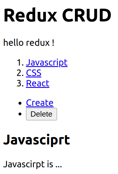 마지막으로 article 컴포넌트에서 state를 전달받아 자신의 id에 해당하는 contents를 파싱한 후 title과 descript을 Article에 뿌려주면 된다. 마지막으로 state가 변경될 때 마다 컴포넌트를 업데이트 해주기 위해서 store.subscribe()메소드에 article 컴포넌트를 보내주면 클릭할 때 마다 웹 페이지가 변경되면서 article을 READ할 수 있다.
