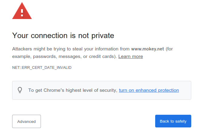 결국 클라이언트 단에서 서버로 부터 받은 데이터 중 인증서 정보를 확인하고 인증서의 도메인 정보와 데이터 제공자의 도메인 정보를 비교하여 중간자 공격을 감지하고 보안 이슈를 해결할 수 있게 되는 것이다. chrome에서도 HTTPS 프로토콜로 전송되지 않은 요청에 대해 경고창을 띄우고 안전한 HTTPS 프로토콜을 사용한 페이지로 유도하고 있는 것이다.