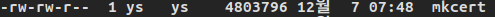 mksert를 설치하면 소유자와 소유그룹은 read와 write 권한이 주어진다. 공개유저는 read 권한만 주어진다. mkcert를 실행해야 하기 때문에 실행권한을 일괄적으로 부여한다.