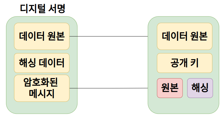예를 들어 비트코인을 보내는 사람은 원본 데이터를 해싱한 후 본인이 보유한 개인키로 암호화합니다. 이 후 원본 데이터와 암호화된 메시지를 동시에 전송합니다. 비트코인을 수신하는 사람은 전달받은 암호화된 메시지를 공개키(지갑 주소)로 복호화를 한 후 전달받은 원본 데이터 해싱 결과와 비교한 후 디지털 서명이 되었음을 알게 됩니다.