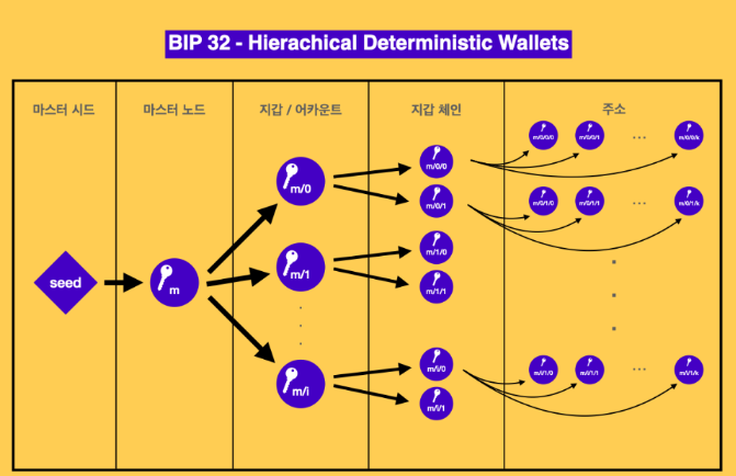 | 트리 레벨 3 | 지갑의 논리적 계정 구분. 같은 코인을 사용해도 2개의 지갑을 사용할 수 있게 됨 |
