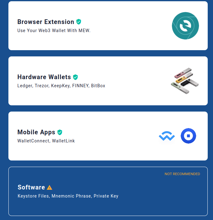 지갑에 접속해서 software를 클릭하시면 지갑에 접속하는 방식이 나옵니다. 우리는 위에서 Keystore을 생성했으니 Keystore을 클릭합니다.