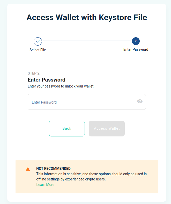 미리 다운로드 받은 keystore 파일을 선택합니다. 이제 앞서 설정한 비밀번호를 적어줍니다.