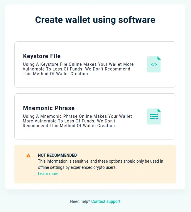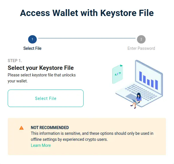software에서도 Keystore방식과 Mnemonic 구문을 사용하는 2가지 방식을 지원합니다. Keystore File을 클릭합니다.