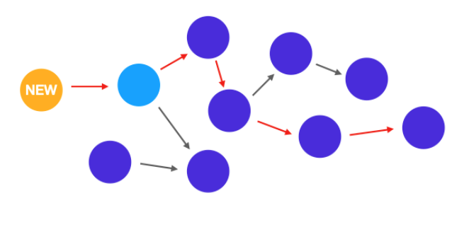② 새로운 트랜잭션은 네트워크 상 이전 트랜잭션을 참조해야 네트워크에 승인될 수 있으므로 이전 트랜잭션을 검색합니다. 이전 트랜잭션은 굳이 직전 트랜잭션일 필요는 없습니다. 이 과정에서 더 많이 검증된 트랜잭션을 검색하도록 하여 안정적인 네트워크 성장이 가능하게 됩니다.