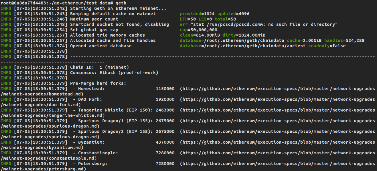 INFO [07-05|21:56:15.800] Allocated cache and file handles database=/root/go-ethereum/test_data/test_data/geth/chaindata cache=16.00MiB handles=16