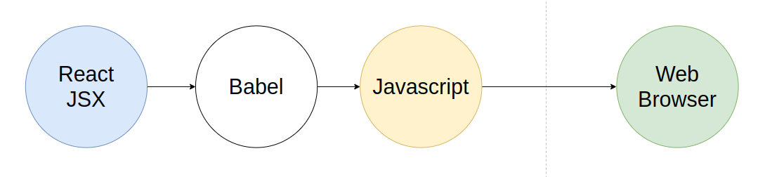 React에서 사용하는 JSX문법은 babel이란 컴파일러를 통해 웹 브라우저가 이해할 수 있는 Javascript 파일로 변환됩니다. 이 후 JS파일이 렌더링되어 사용자가 사용할 수 있는 브라우저 화면이 완성됩니다.