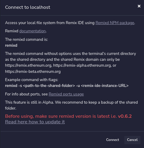 Remixd는 로컬에 저장되어 있는 소스코드를 Remix IDE와 연동해줍니다. 로컬과 웹소켓 통신으로 웹 상의 Remix와 로컬의 VS code가 자동으로 연동하게 해줍니다. 코드를 백업하기 위한 용도로 최적입니다.