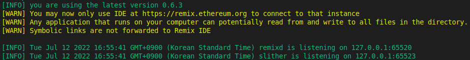 $ remixd -s "소스코드를 담은 폴더 절대경로" --remix-ide https://remix.ethereum.org