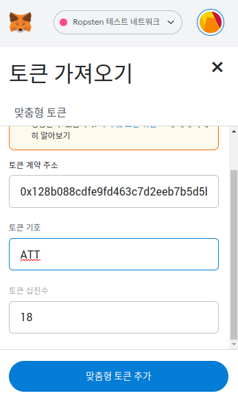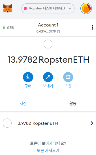 ① 메타마스크 지갑과 테스트넷(Ropsten)을 연결합니다.