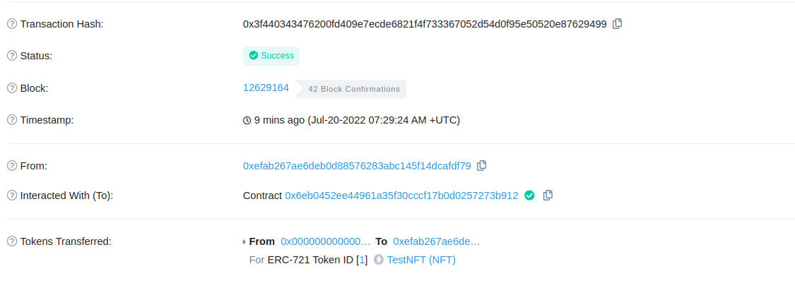 이더스캔 Ropsten 넷에서 신규 발행된 ERC-721 Token을 확인할 수 있습니다.