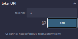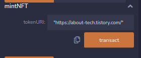 tokenURL로는 블로그 주소 https://about-tech.tistory.com 을 넣어 NFT를 민팅합니다.