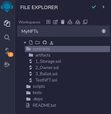 ⓑ 새로운 프로젝트를 실행하고 contracts 폴더에 testNFT.sol 파일을 생성합니다.