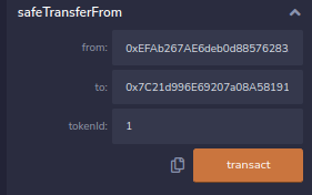 NFT를 전송하기 위해서 safeTransferFrom 함수를 사용합니다.