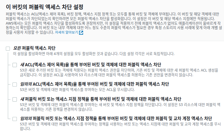 먼저 버킷을 생성하고, 권한을 설정합니다.
