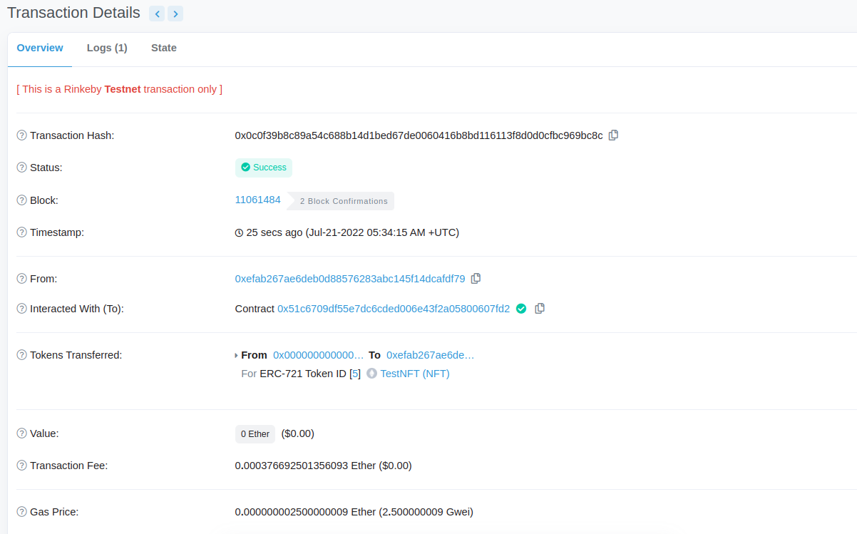 두번째 서명은 해당 NFT에 개인키로 서명을 합니다. 서명까지 완료되면 성공적으로 OpenSea Testnet에 제가 만든 NFT가 정상적으로 배포됩니다.