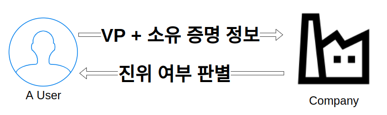 ④ A 사용자는 입사하고자 하는 회사(Verifier)에게 졸업증명서(VP)와 자신이 졸업증명서의 소유자임을 증명하는 정보를 함께 전달합니다.