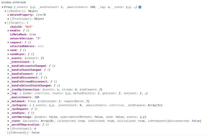 이 문제를 개선하고자 제안된 것이 EIP-1139입니다. EIP-1139에서는 이더리움 공급자 API를 표준화해서 지갑들 사이에 상호 운용이 가능하도록 합니다. 이더리움 공급자 객체는 웹 콘솔에 window.ethereum 형식으로 으로 제공되고 있습니다.