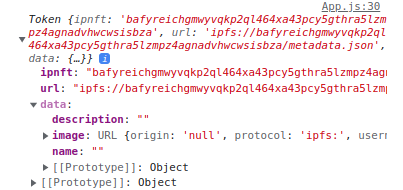 3. name, description, image를 하나의 Object로 구성해서 IPFS에 업로드한다. 업로드하는 메소드는 strore()를 사용한다.
