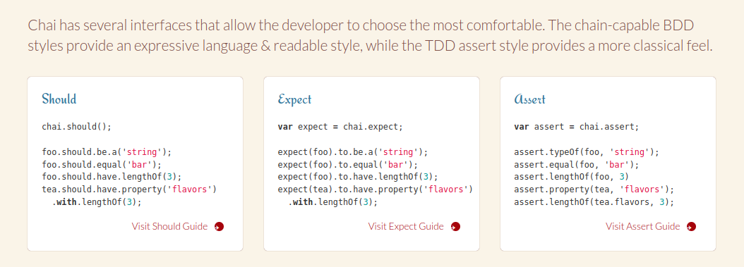 mocha를 통해 테스트를 진행하는 경우 더 풍부한 라이브러리를 사용할 수 있도록 해주는 녀석이 바로 'chai'입니다. expect, assert, should 등의 구문을 가지고 있고, 테스팅 시나리오를 더 풍부하게 사용할 수 있습니다.