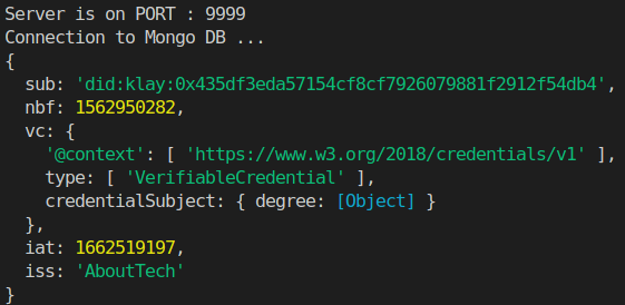 sub: "did:klay:0x435df3eda57154cf8cf7926079881f2912f54db4",