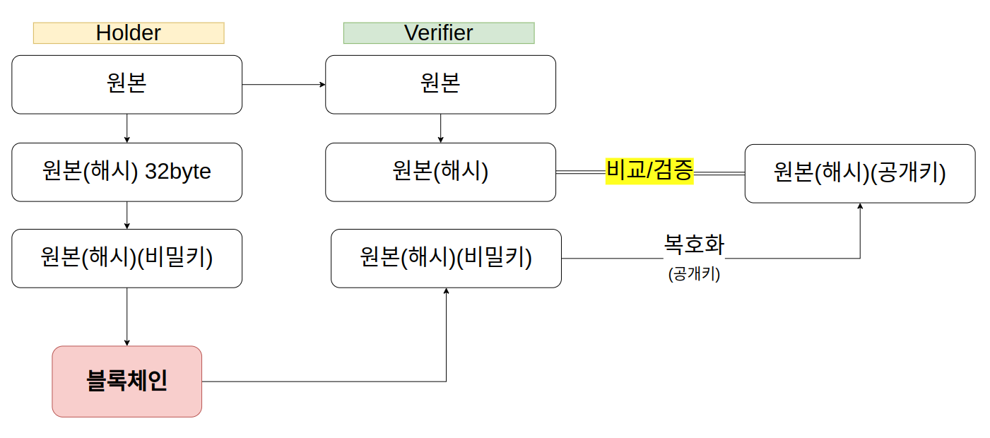 ① Holder는 원본 데이터를 SHA256 알고리즘으로 해싱한다.
