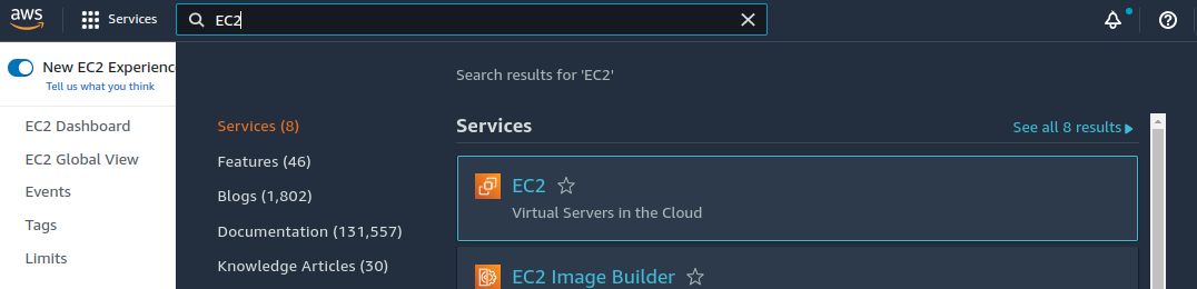 AWS EC2(Elastic Computer Cloud)는 서버 컴퓨터 서비스를 제공합니다. 사용이 완료된 클라우드 컴퓨터는 종료를 해줘야 합니다. 우선 검색창에 EC2를 검색합니다.