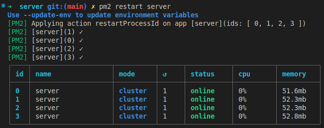 $ pm2 restart server