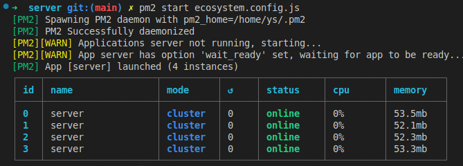 $ pm2 start ecosystem.config.js