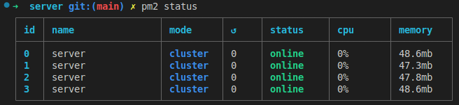 $ pm2 status