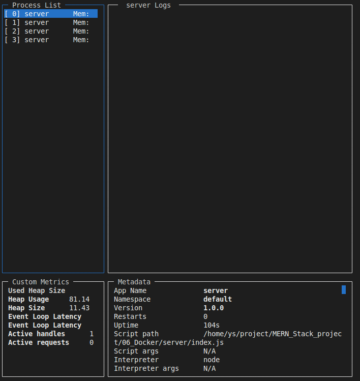 ④ 현재 작동중인 pm2를 모니터링 할 수 있습니다.