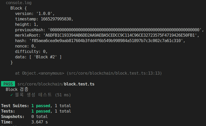 src/core/blockchain/block.test.ts 파일을 생성하고 테스트 코드를 작성합니다.