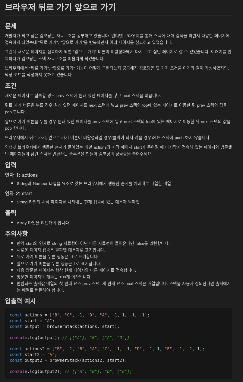 Stack 웹 브라우저 뒤로가기 앞으로가기 풀이