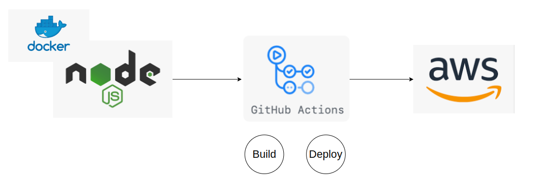 전체적인 배포 구성을 보면 아래 그림과 같습니다. Node.js에서 작성한 서버 프로그램은 Dockerfile로 형상화를 한 후 AWS EC2로 배포를 진행합니다.