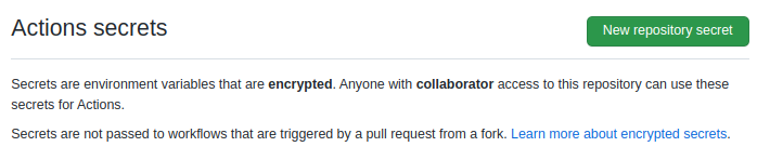 New repository secret을 클릭해서 해당 레포의 Action secret을 생성합니다.