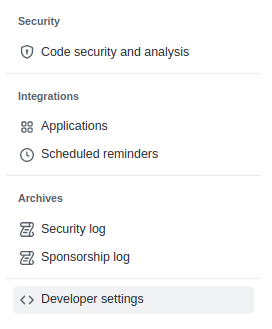 왼쪽 하단에서 Settings->Developer settings로 접속합니다.