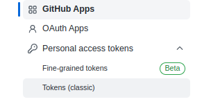 왼쪽 메뉴에서 Personal access tokens->Tokens(classics)를 클릭합니다.