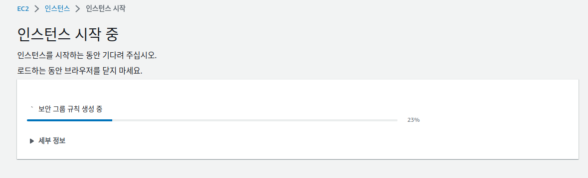 설정이 완료되면 인스턴스 시작을 클릭해 서버를 생성합니다.