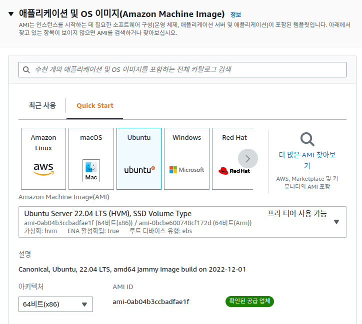 22.04 LTS를 지원하는 우분투 이미지입니다.