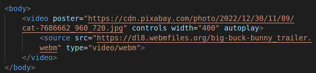 아래 사이트에서 webm 형식의 비디로 URL을 가지고 실습해보세요.