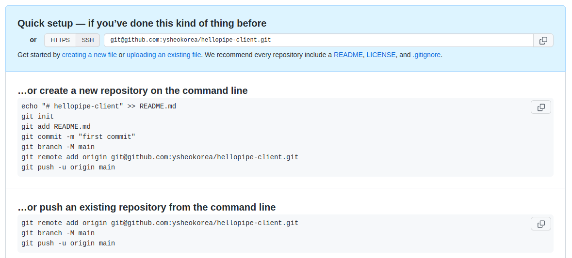 새로운 Git Repository를 생성하고 기존 코드를 push합니다.