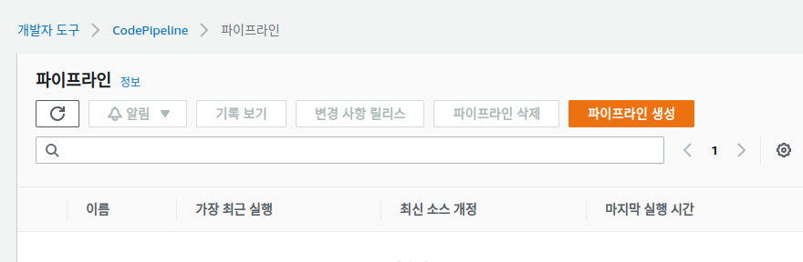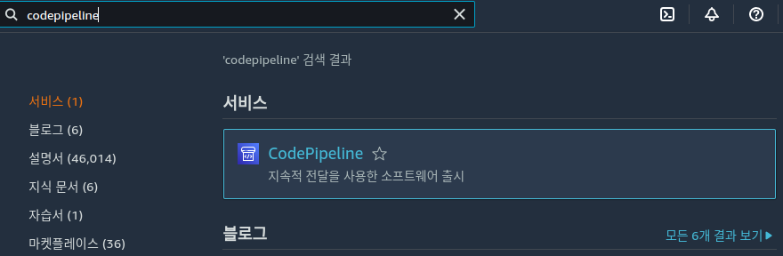 AWS Codepipeline을 검색해서 메인 콘솔에 접속합니다.
