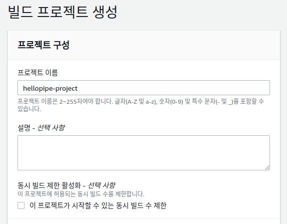 빌드 프로젝트 이름을 지정합니다.
