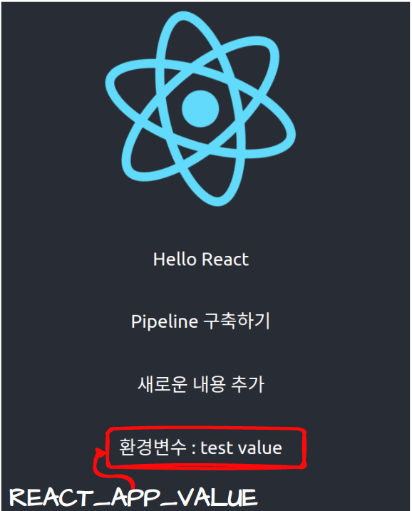 <p>환경변수 : {process.env.REACT_APP_VALUE}</p>