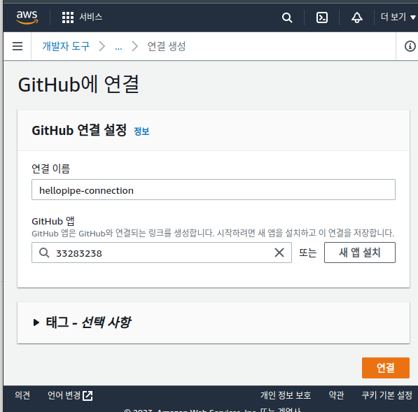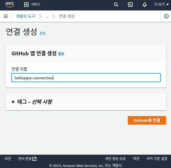 Github에 연결을 클릭하고 연결이름을 지정합니다.