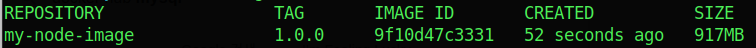my-node-image 1.0.0 9f10d47c3331 8 minutes ago 917MB