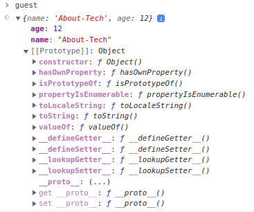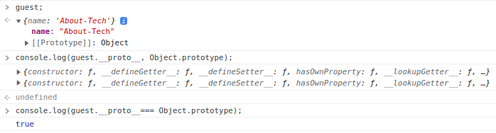 자바스크립트의 [[Prototype]]의 최상단에는 Object.prototype이 존재하며, 모든 객체에 상속된다. 즉 자바스크립트 환경의 모든 객체에서 Object.prototype 프로퍼티에 접근이 가능하고 사용이 가능하다. 임의로 생성한 guest 객체의 [[Prototype]]은 Object.prototype을 상속받고 있다.