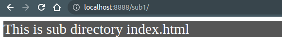 위 과정대로 Dockerfile을 build 하시고, Image를 run 합니다. 자 이제 localhost:8888/sub1 으로 접속하면 우리가 만든 sub1 디렉토리 내의 index.html 파일이 로드됩니다.