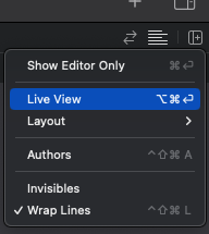 우측 패널에 라이브뷰를 클릭하시면 작성된 코드를 라이브뷰로 바로 확인할 수 있습니다.