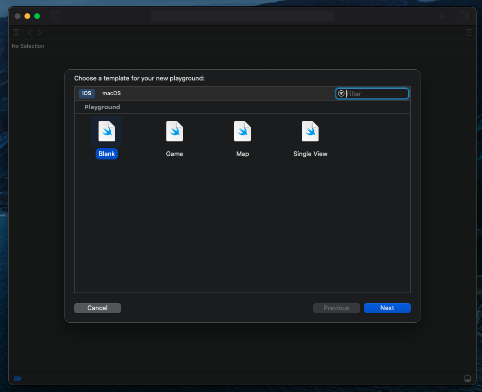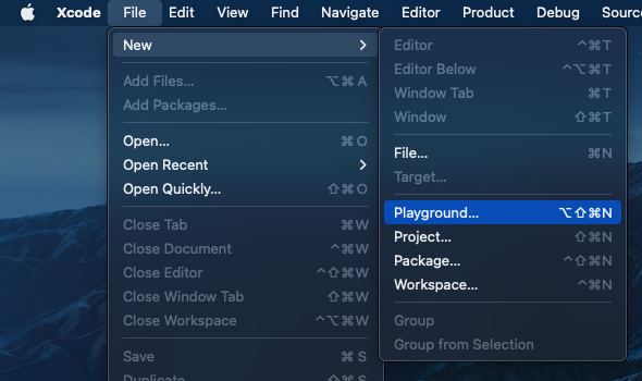 먼저 플레이그라운드를 시작하기 위해서는 xcode를 실행해줍니다. 단축키는 ⌥[option] + ⇧[shift] + ⌘[command] + N입니다.